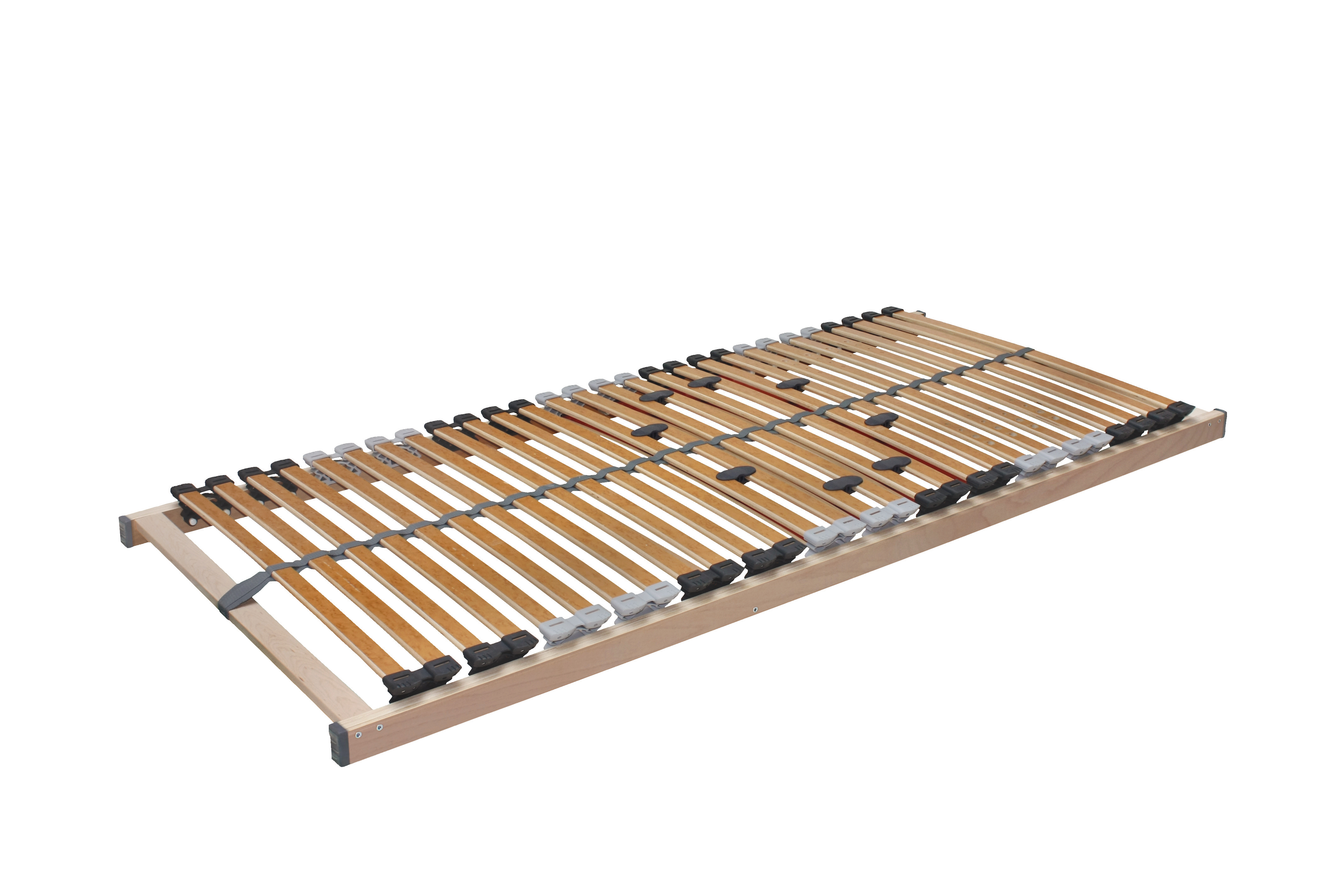 Pevný lamelový rošt s 28 lamelami se zvýšenou nosností. Lamely jsou uloženy ve výkyvných gumových pouzdrech. Anatomické uspořádání lamel má příznivý vliv na polohu těla při spánku. Středový zdvojený popruh zajišťuje stabilitu roštu.
