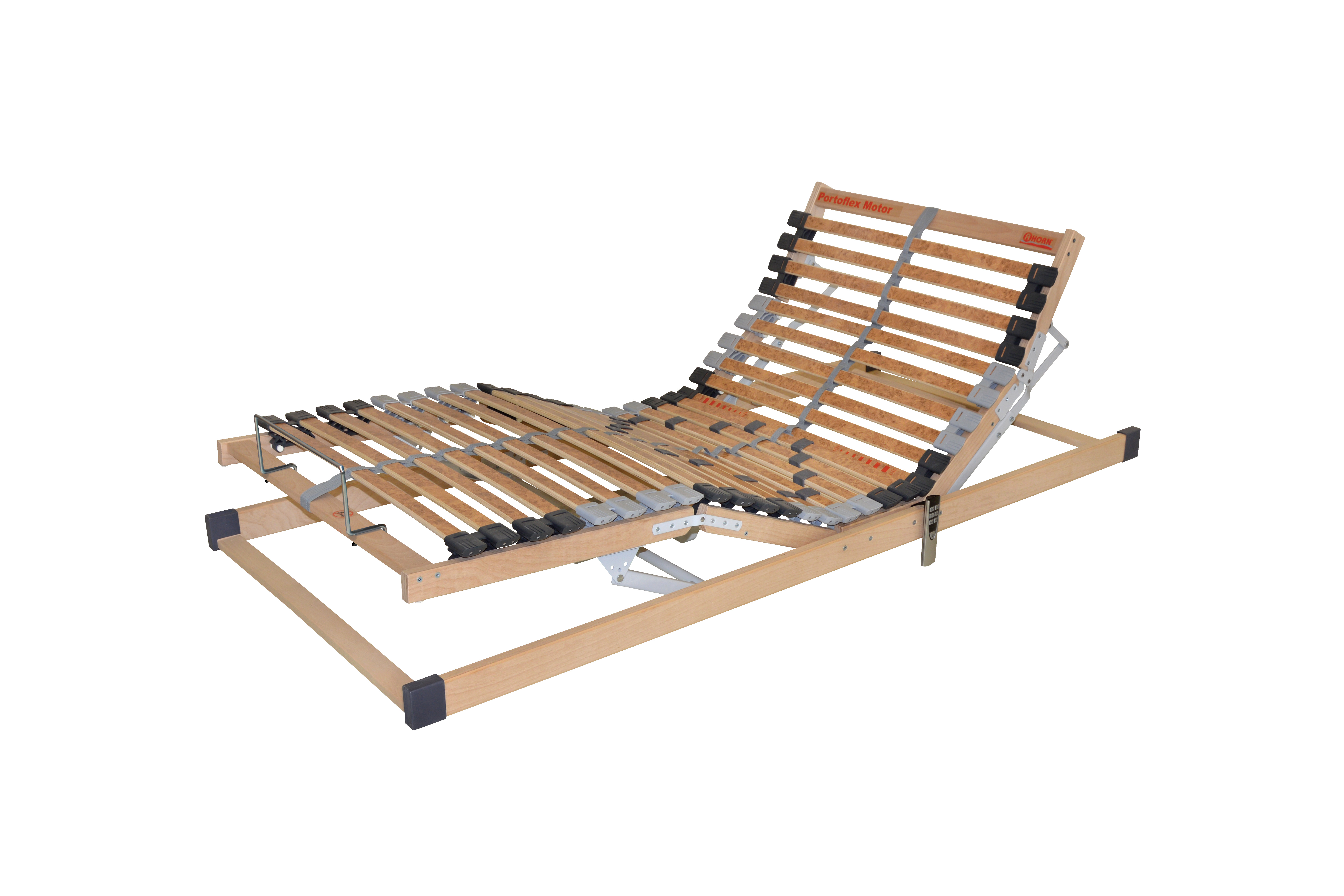 Polohovací lamelový rošt s 28 lamelami se zvýšenou nosností pomocí 2 motorů rozloží rovnoměrně váhu těla na plochu matrace a tím dochází k uvolnění páteře i kloubů. Polohování je na dálkové ovládání, připojeno kabelem. Lamely jsou uloženy ve výkyvných gumových pouzdrech. Anatomické uspořádání lamel má příznivý vliv na polohu těla při spánku.