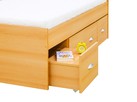 Výhodou je zvýšená lehací plocha postele 59 cm pro snadné vztávání, odkládací noční stolek a hluboké zásuvky.