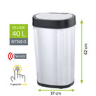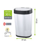 Bezdotykový odpadkový koš Helpmation z řady Deluxe přináší do domácnosti čistý a moderní design. Koše Helpmation se vyznačují kvalitním zpracováním, úsporným provozem a tichým systémem otevrírání a zavírání víka.