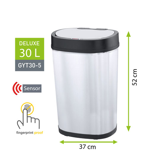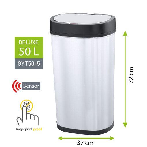 Prémiová řada je vybavena nejnovějším systémem otevírání víka zaručující dlouhou životnost a odolnost. Bezdotykové koše zajišťují maximální hygienu a snižují výskyt bakterií. Při přiložení ruky 25 cm nad senzor se víko automaticky a tiše během 0,5s otevře.