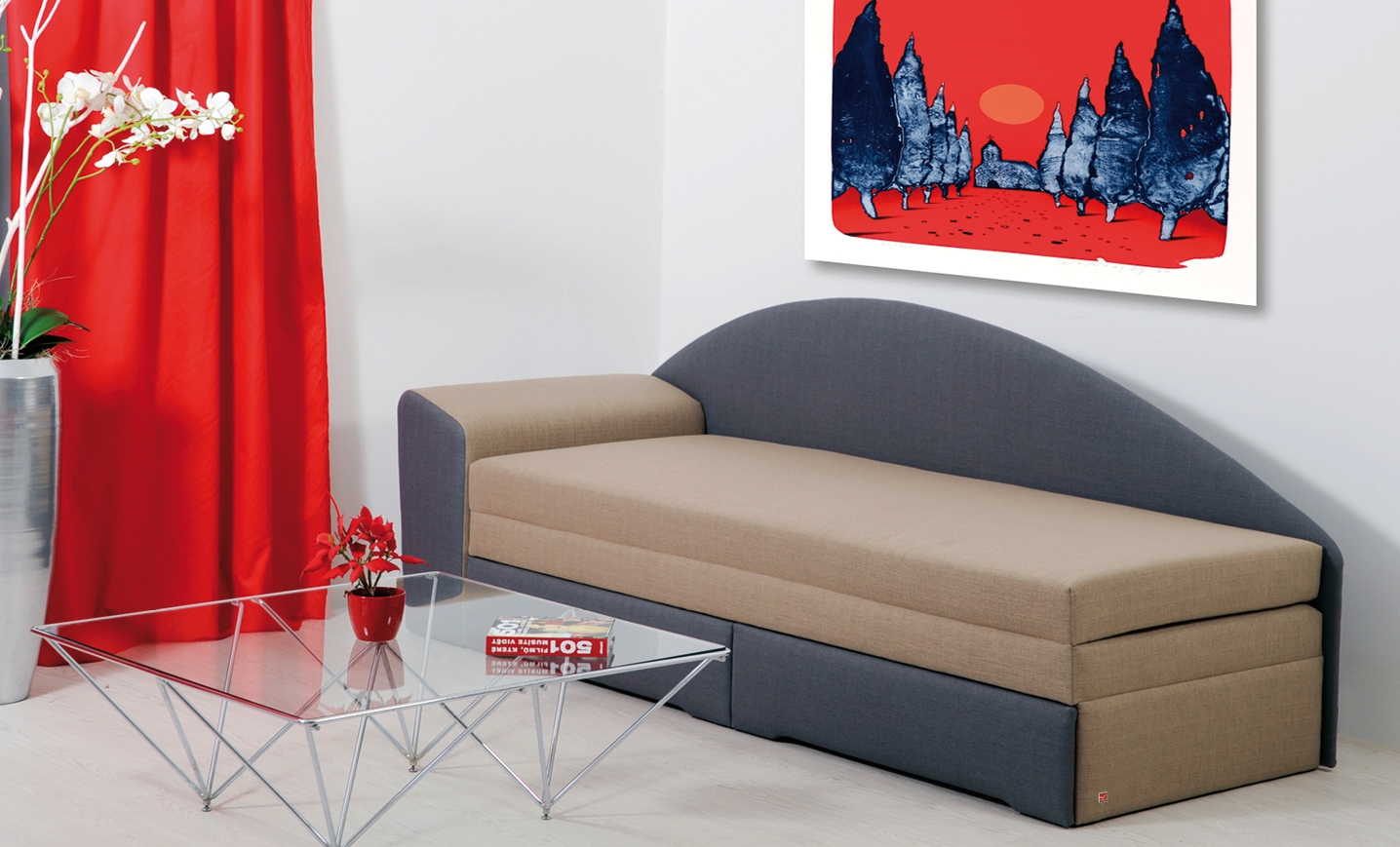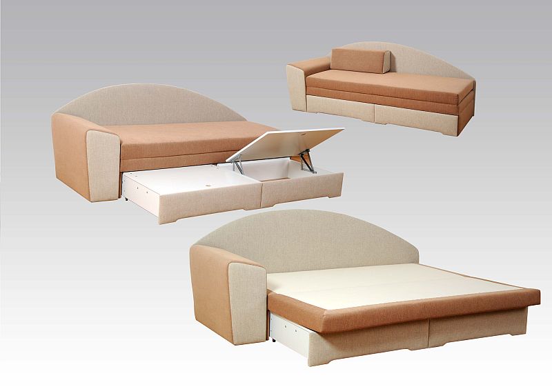 Rozkládací pohovka Gaia s výsuvným úložným prostorem a možností volby uspořádání čel. Jednoduchou manipulací lze vytvořit kvalitní dvojlůžko, které se osvědčí především v menších bytech. Sestava se vyrábí v provedení pravém nebo levém.