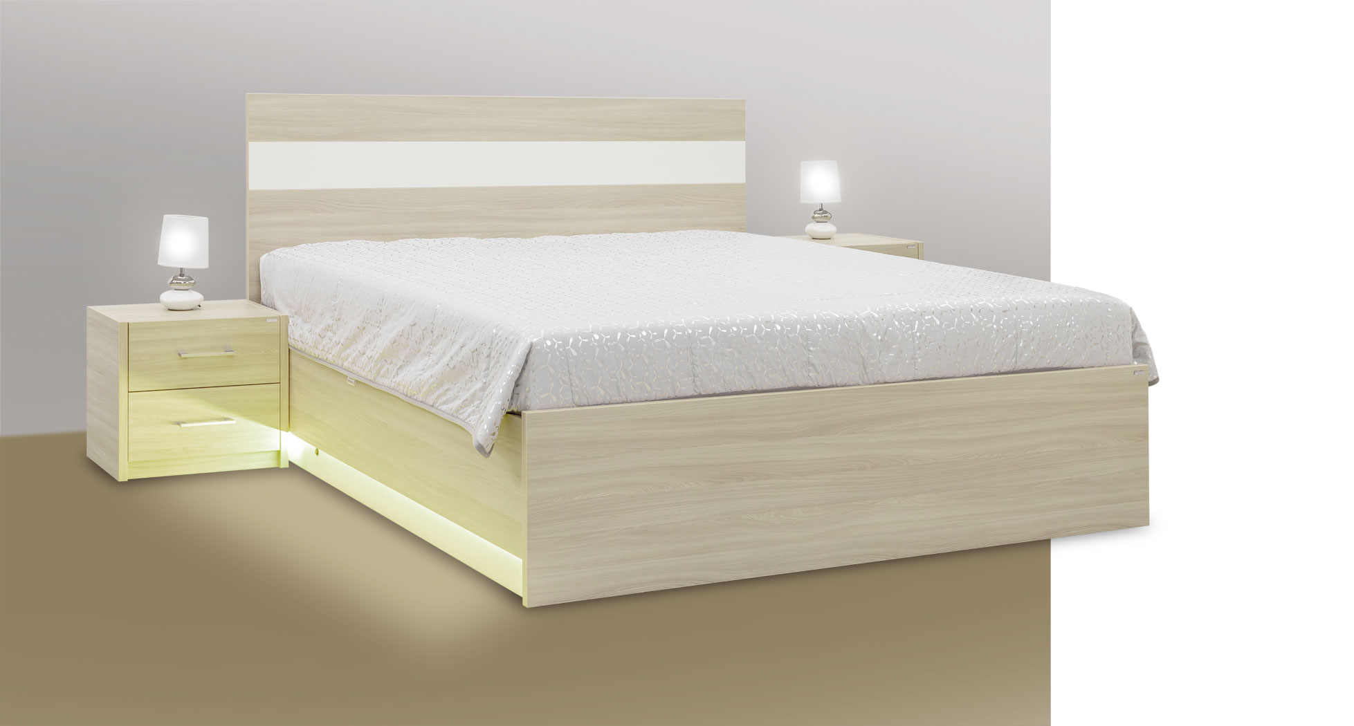 - Cena uvedena za postel s rošty, bez matrace, polštářů a přehozu.