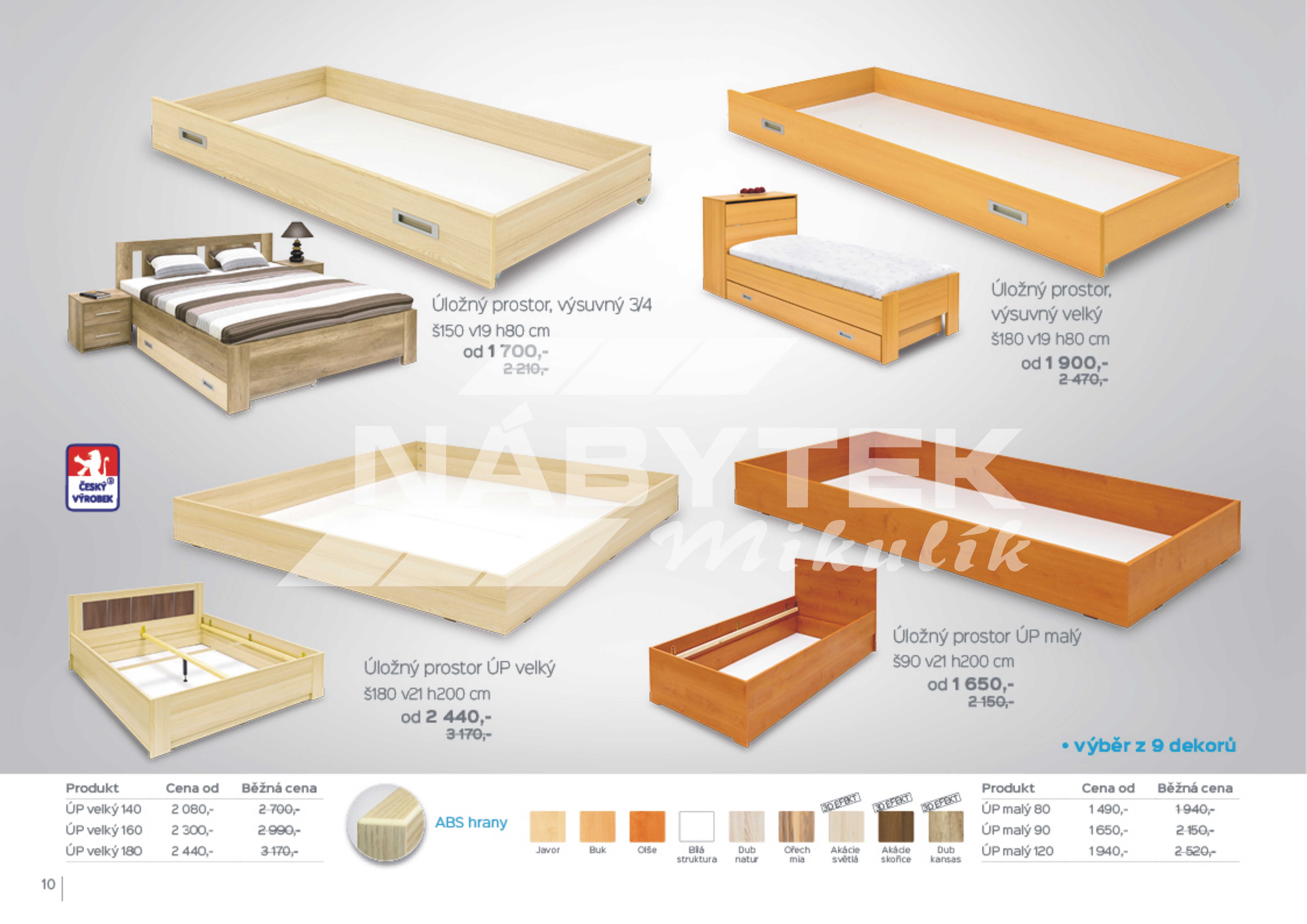 Možnost k posteli vybrat úložný prostor dle produktového listu.